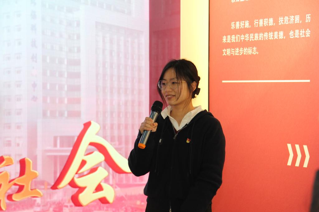 活动伊始,全体人员先后走进金山环保党建文化展示馆与企业文化馆,感受企业党建引领绿色发展的生动实践,切身感受到企业服务社会、热心公益、反哺教育事业的浓厚情怀与责任担当。理论学习环节,支部党员程可馨带领全体党员重温了习近平总书记关于树立和践行正确政绩观的重要讲话、重要指示批示精神,她表示青年党员要深刻把握正确政绩观的核心要义,脚踏实地、潜心钻研,努力成为堪当民族复兴重任的先锋力量。随后支部党员张钰玟结合学科专业,带领大家学习2026年全国两会表决通过的《中华人民共和国生态环境法典》,强调作为未来环境治理的主力军,研究生党员要主动读懂环境法规、践行环境法规,以专业之力守护生态环境。