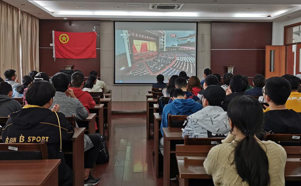 聆听青春教诲,勇担时代重任。4月30日上午,习近平总书记在纪念五四运动100周年大会上发表重要讲话。学院师生怀着喜悦与振奋的心情,纷纷聚集在一起,收看大会电视现场直播。大家在收看直播时聚精会神、情绪热烈,大家认真听讲话、做笔记。师生们对习近平总书记的讲话反响强烈,收看现场掌声不断。