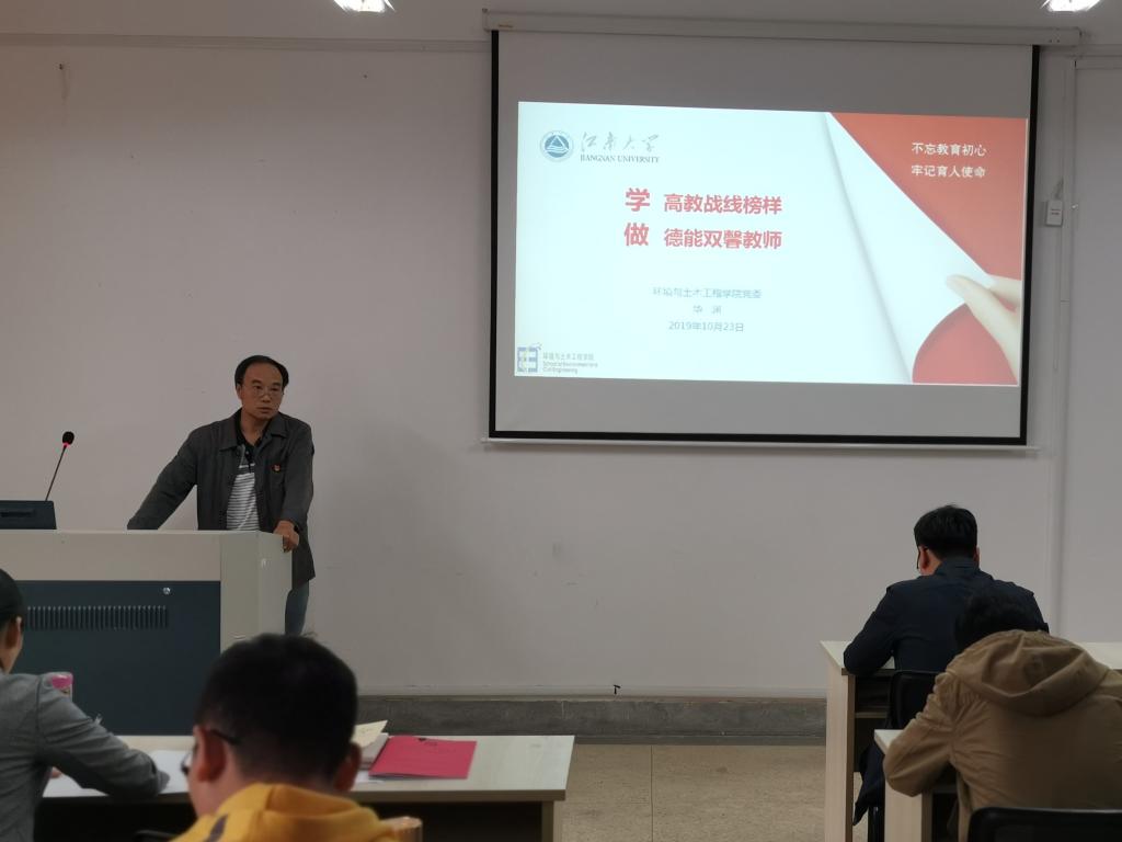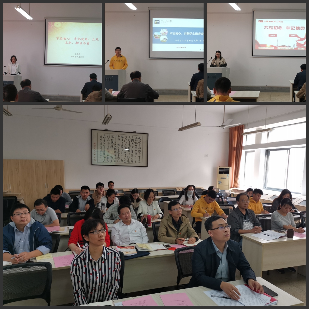 集中学习培训中,院党委书记华渊同志和党委副书记、副院长金明媚同志首先就《学高教战线榜样,做德能双馨教师》和《不忘初心使命,坚定理想信念》做了专题辅导报告。接着,两个党支部分别从不同角度进行了交流发言,教工环境二支部围绕“不忘教育初心,牢记科研使命,争当新时代环保先锋”做了支部建设和特色凝练方面的交流,本科生环工工管专业党支部结合“坚守立德树人初心,做好青春引路人”主题,就支部在学生培养、学生成长成才中发挥的作用等方面进行了交流。同时,院优秀共产党员王晓菡、何涛、毛秋燕等三位同志以“不忘初心、牢记使命、立足本职、担当尽责”为主题,分别从立德树人、教书育人、以身作则、发挥党员先锋模范作用等方面交流发言。