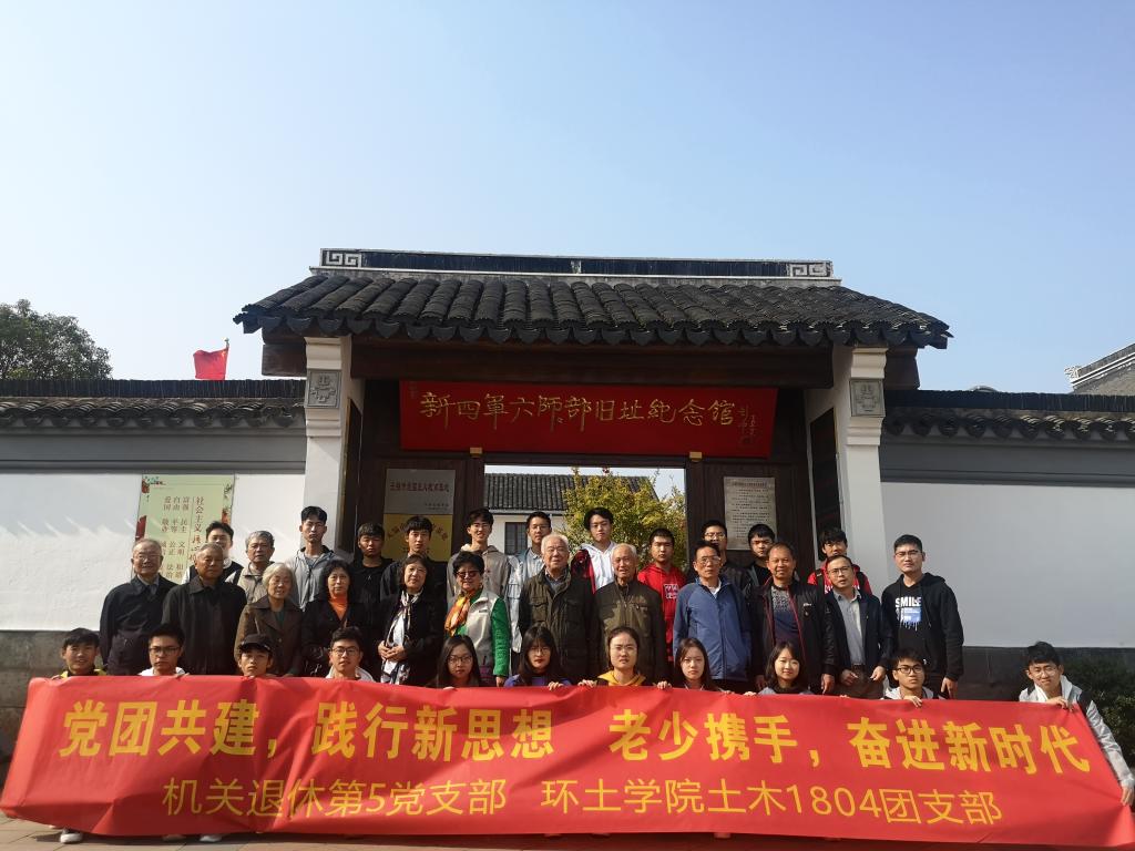2019年11月10日,环境与土木工程学院团委组织土木1804班团支部与结对共建的校机关退休第五党支部赴新四军六师师部旧址纪念馆、山联村开展参观交流活动。校第五退休党支部党员,学院团委书记兼学工办主任蒋达锋、辅导员兼班主任何涛以及土木1804班全体同学参加。