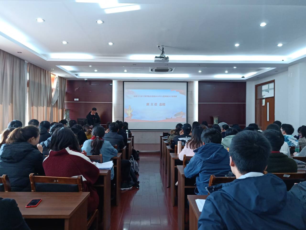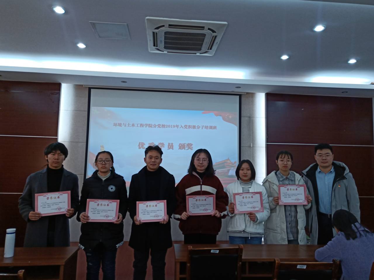 2019年12月4日,环境与土木工程学院分党校2019年学生入党积极分子培训班结业典礼在学院楼D303会议室举行。院党委副书记兼副院长、分党校副校长金明媚,本科生土木专业党支部书记、辅导员薛羚伟以及全体学员出席本次典礼。培训班班主任、辅导员何涛主持典礼。