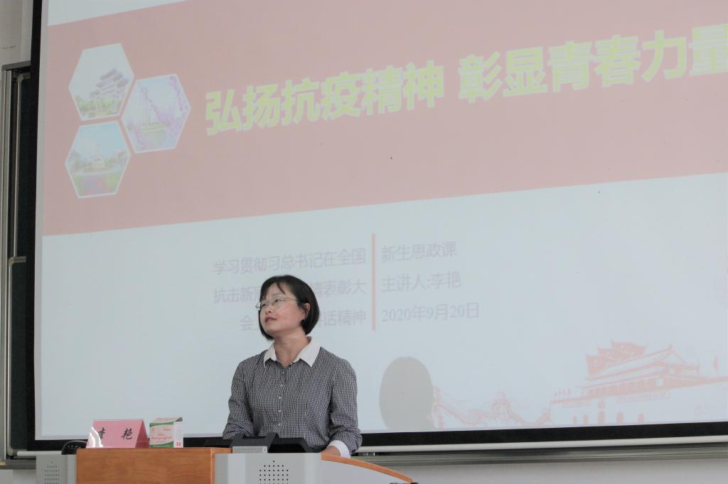 9月20日上午,环境与土木工程学院党委书记李艳为新生开讲主题为《弘扬抗疫精神,彰显青春力量》的思政教育第一课。学院党委副书记、副院长胡娟持报告会,辅导员、本科新生班主任参加了会议,2020级全体本科生参加学习。