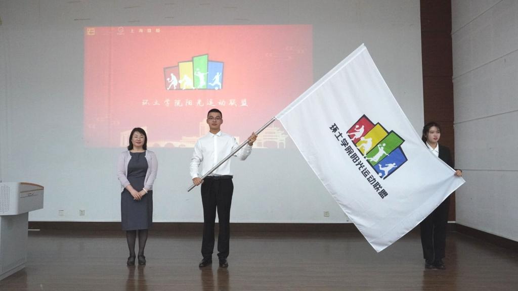 胡娟为阳光运动联盟授旗