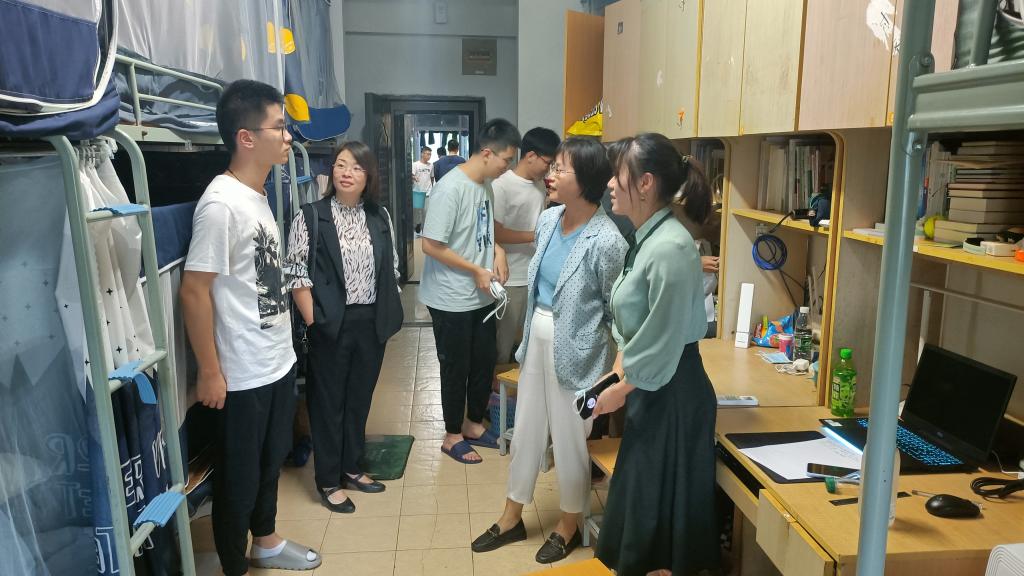 李艳一行每到一处,都会向学生们表示欢迎,带去全院领导与老师的亲切问候与祝福,同时也仔细了解学生返校后的身体情况、生活情况、适应情况等,鼓励同学们要尽快收心,调整状态,更好适应大学的学习与生活。然后,老师们再三强调,学生们要严格遵守常态化疫情防控期间的规章制度,要深刻理解和领会国家、学校在特殊时期所提的特殊要求、所采取的特殊管理等,若有异常情况,要及时报告辅导员。最后,老师们建议新生要以乐观的态度、饱满的精神,积极投入到新学期的学习与生活之中,要互帮互助,齐心协力,共同营造良好的学习和生活氛围。