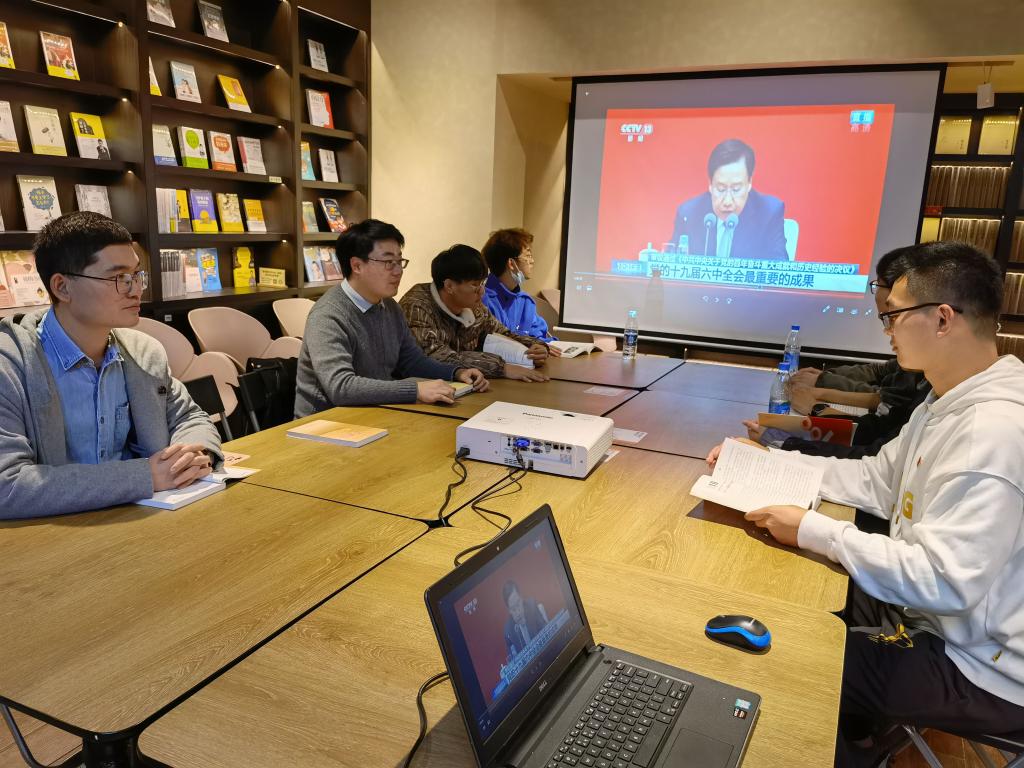 中国共产党第十九届中央委员会第六次全体会议成功举办后,为深入学习领会党的十九届六中全会精神,全面系统地领会全会精神的丰富内涵与核心要义,牢牢把握正确方向导向,环境与土木工程学院本科生环境专业党支部、土木专业党支部部分党员与团学组织学生代表于11月29日联合开展了学习十九届六中全会精神专题会。
