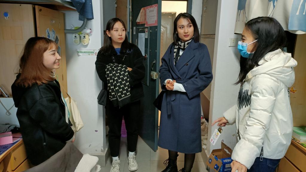 关怀进宿舍,温情暖人心。为做好学院少数民族学生关心关爱工作,准确把握少数民族学生思想动态和学习生活需求,进一步促进民族团结进步。12月23日,少数民族内派教师古扎努尔、胡文波,学院少数民族专项管理辅导员李东辉深入宿舍进行走访。