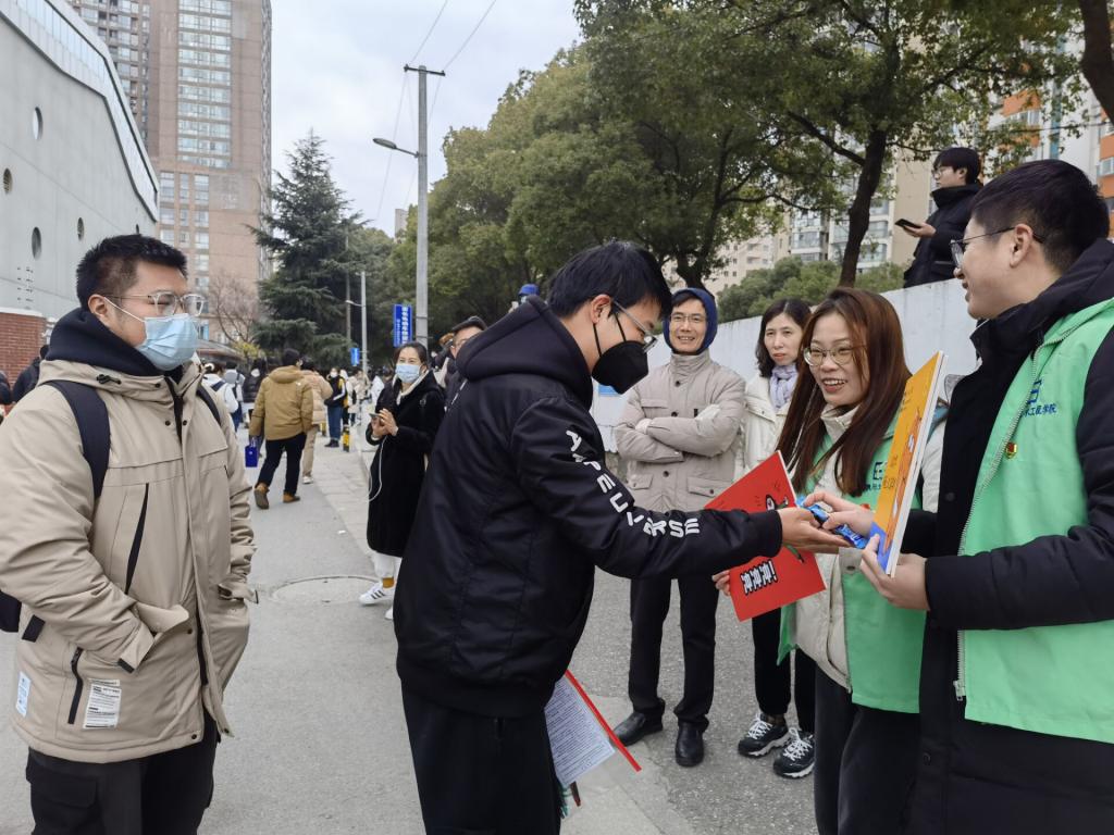 学院党委高度重视做好考研学生的服务保障工作,院党委副书记、副院长胡娟于12月23日为参与服务的党员志愿者们做专题培训。她强调,要充分发挥党员先锋模范作用,做好充足充分的准备,在服务中增强党性修养,为考研学子提供最优质的服务。学院辅导员提前前往校外考点走访了解到考点周围的就餐情况与住宿环境,并汇总温馨提醒反馈给考研学子们。学生党员吴文钰与小组成员在考研前夕,在学校图书馆前组织“自由拥抱”活动,为考研学子给予温暖与勇气。