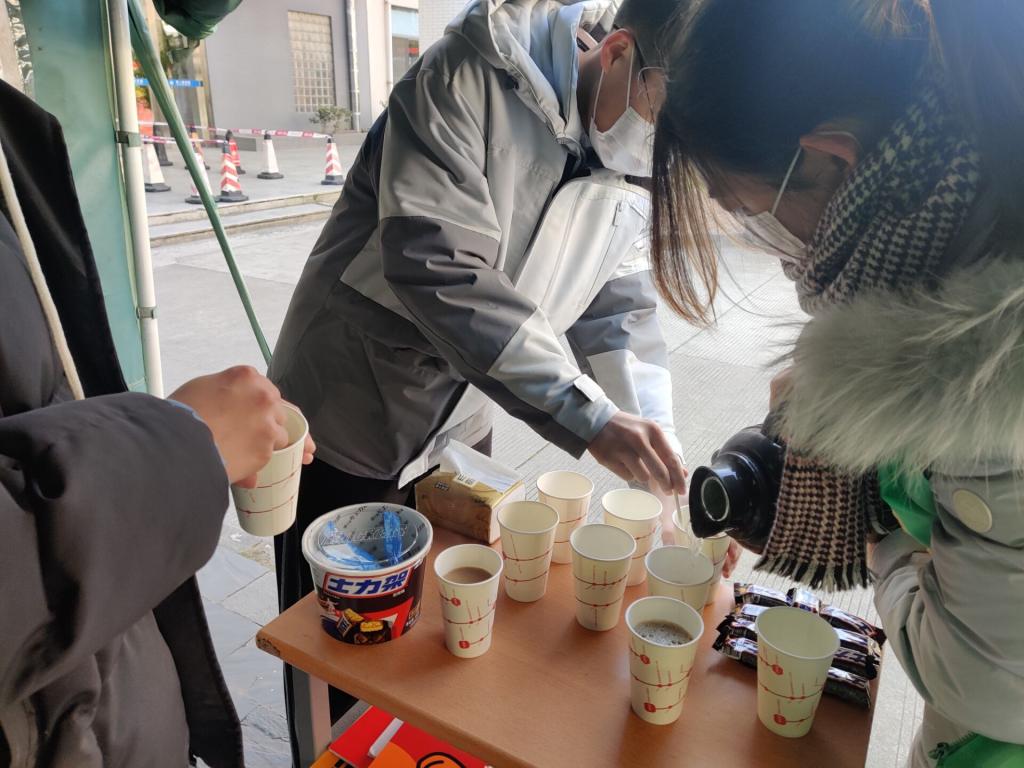 天气寒冷,但温暖相随,党员志愿者们的暖心服务将助力考研学子激发斗志,争取获得理想成绩。