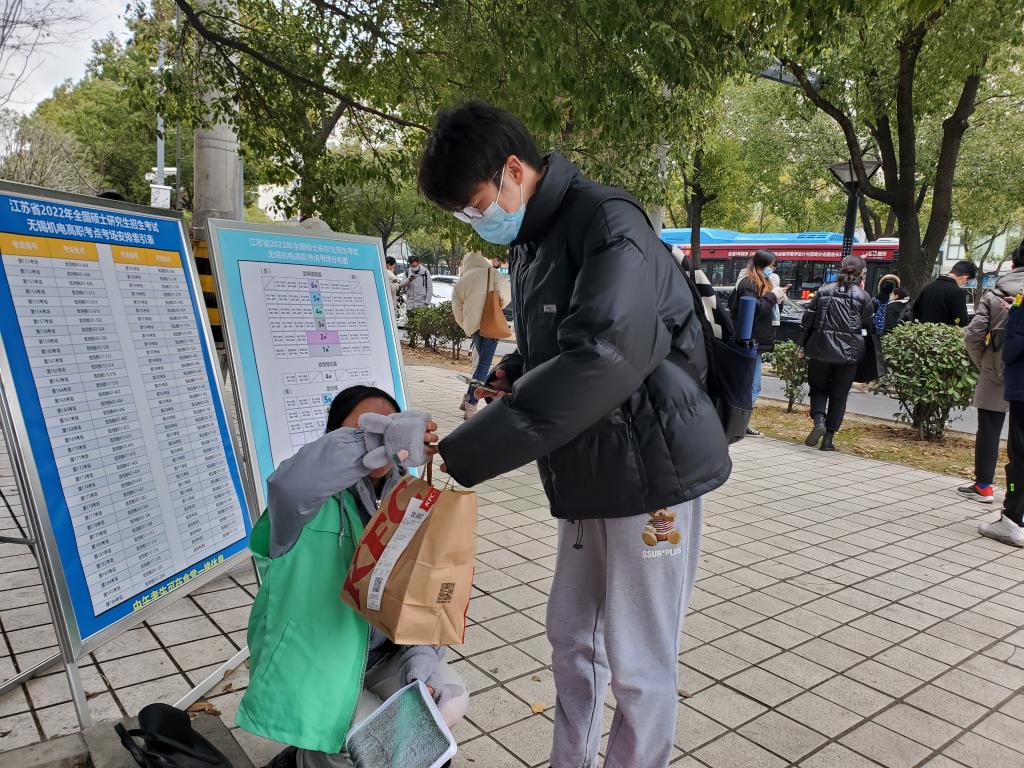 “相信自己,加油!”“别担心,抱一抱,我们始终与你温暖相随。”在学院学生各考点前,党员志愿者们举起加油板,给予拥抱,为进场的考生们加油助威。学院党委在学院学生参加考试的江南大学、无锡商业职业技术学院、无锡机电高职、无锡积余实验学校等四个考点安排志愿服务小组,提供中午订餐协助服务、必备物资服务以及暖心助力服务,为考研学生接送订餐,发放士力架、咖啡条、口罩、暖贴等,提供热咖啡、热水等,给予关心拥抱。