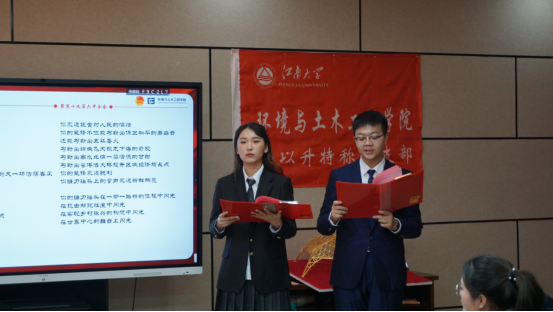 活动在杨馨月、赵炳堃同学的诗朗诵《百年答卷》中拉开帷幕。程旭通过一个简短生动的视频展示了班级风采,并带领同学们共同学习党的十九届六中全会精神。同学们一起回顾了党的百年奋斗历程,学习了以茅以升为代表的前辈的大国工匠精神,深刻地感受到了中华民族站起来、富起来、强起来所走过的艰辛与不易。之后,同学们共同学习了十九届六中全会精神,并将其联系自身,这一百年的奋斗就犹如建筑中的地基,夯实基础才能无畏面对将来的艰难险阻。信念之于党的意义,正如建筑业中一砖一瓦、一梁一柱搭建起的骨架,有了坚实的结构,建筑才能层层而起,屹立不倒。王晓菡对同学们提出希望:足够的知识储备,长远的人生规划,坚持的进取精神,尽自己最大的努力实现一名大学生的价值。