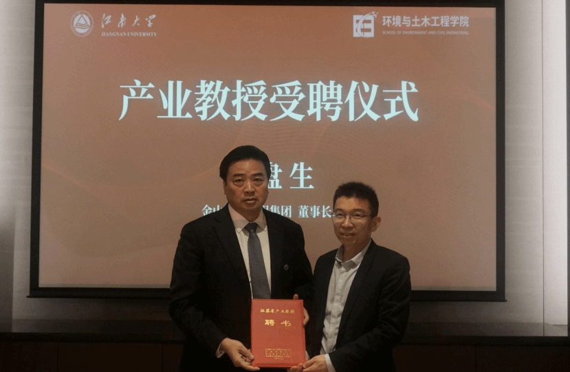 社会资源处处长黄敏为金山环保工程集团董事长钱盘生颁发产业教授聘书