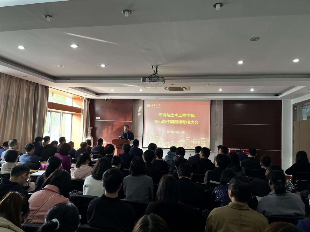 为全面检查第七轮任期目标的实施情况,11月16日上午,环境与土木工程学院在D303会议室举行2020-2022年度任期目标考核大会。考核组组长、校长陈卫,考核组副组长、校党委副书记戴月波,成员张梁、徐学明、刘龙,秘书王维青出席会议,学院全体教职工参加会议,会议由考核组副组长校党委副书记戴月波主持。