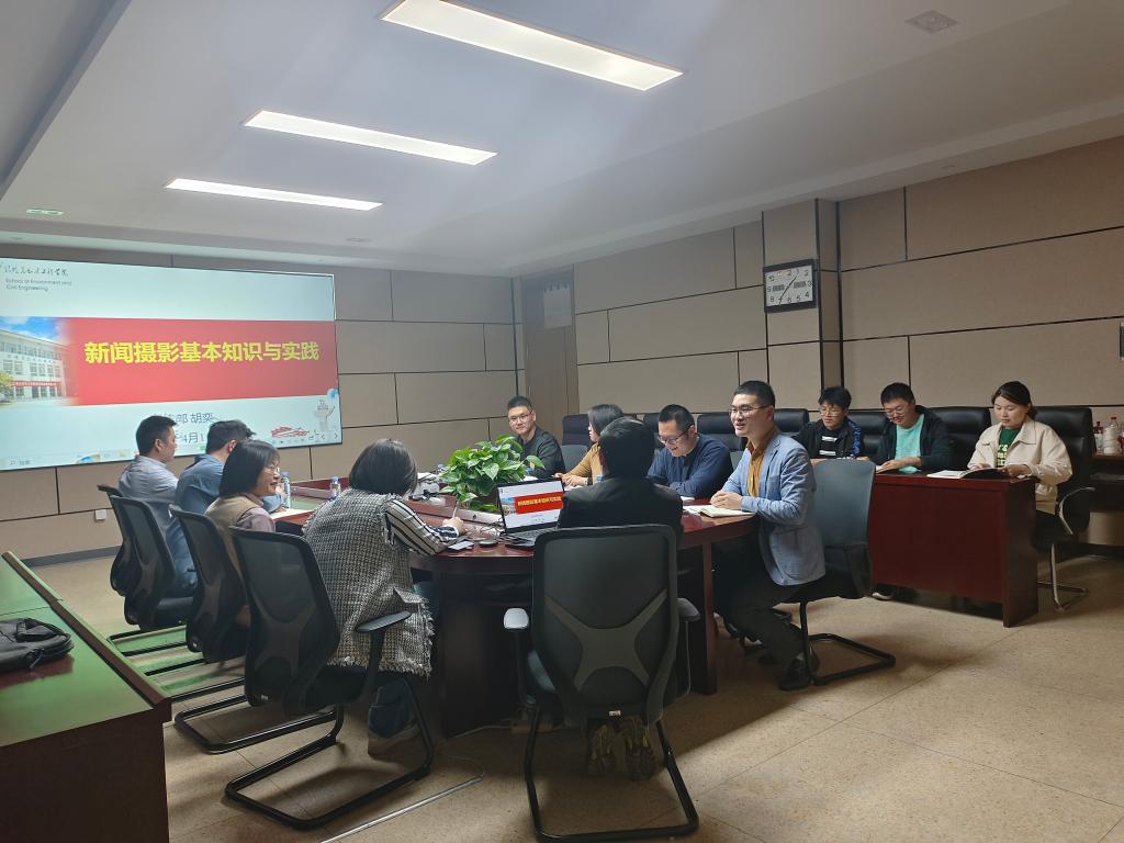 4月13日,环境与土木工程学院在D305会议室举办“新闻摄影基本知识与实践”专题讲座。本次讲座由江南大学党委宣传部胡奕老师主讲,学院党委书记李艳、党委副书记胡娟、教师代表、辅导员及学生骨干参加讲座,辅导员何涛主持讲座。