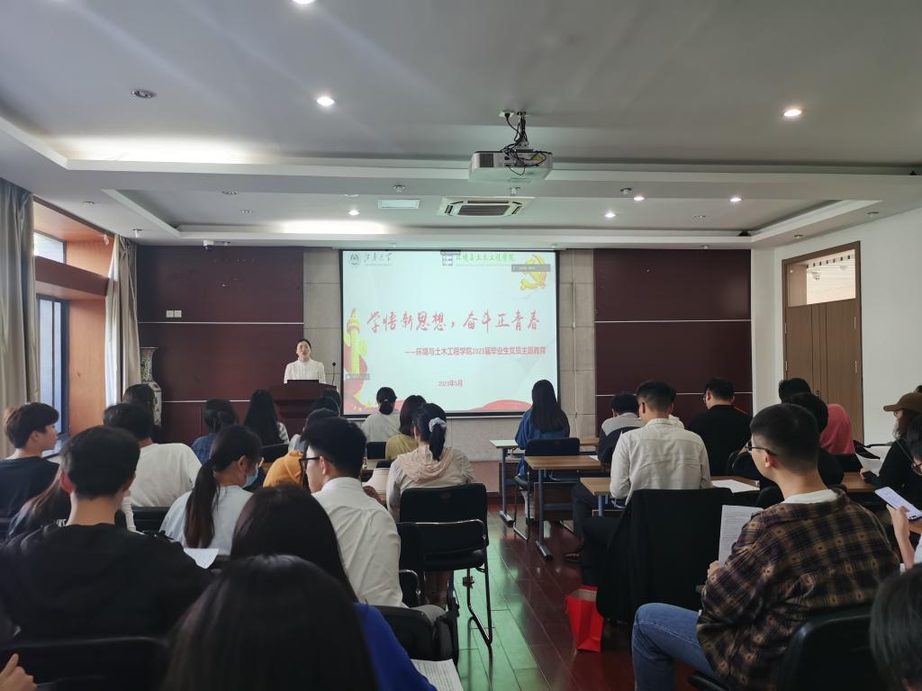2023届毕业生即将离校,为进一步加强毕业生党员意识和党员身份教育,强化毕业生党员组织纪律观念,使全体毕业生党员时刻牢记党员身份,5月23日下午,环境与土木工程学院在学院楼D303组织开展“学悟新思想,奋斗正青春”2023届毕业生党员教育。环境与土木工程学院党委副书记兼副院长胡娟、各支部书记和支部委员以及2023届全体毕业生党员参加会议。此次会议由辅导员周期主持。