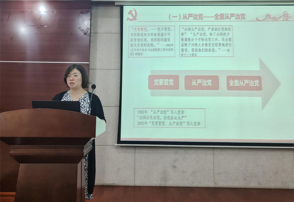 会议首先由胡娟领学,开展了以“坚定不移全面从严治党,深入推进新时代党的建设新的伟大工程”为主题的理论学习。胡娟深刻阐释了全面从严治党的基本内涵与本质,并强调全面从严治党是对马克思主义党建理论和实践的丰富发展,为中国特色社会主义事业的发展提供了坚强保证,全面从严治党永远在路上。随后,周佳赟带领全体党员开展了有关“周恩来精神”的专题教育。她讲述了周恩来自踏上革命道路起伟大的一生,指出了周恩来精神“全心全意为人民服务”的核心与科学内涵,并强调青年党员应充分学习周恩来的楷模精神,汲取磅礴能量,勇担时代使命,在新时代坚持和发展中国特色社会主义征程上奋勇前进。