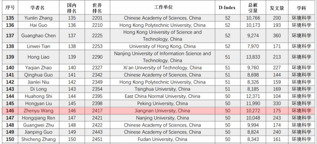 近日,国际知名学术平台Research.com发布了2023年度各个学科领域内的顶尖科学家排名。在环境科学领域,全球共有11258名科学家入选榜单,中国学者占597人。江南大学环境与土木工程学院王震宇教授再次入选该榜单,标志着我校环境学科的科研水平和影响力正稳步提升。