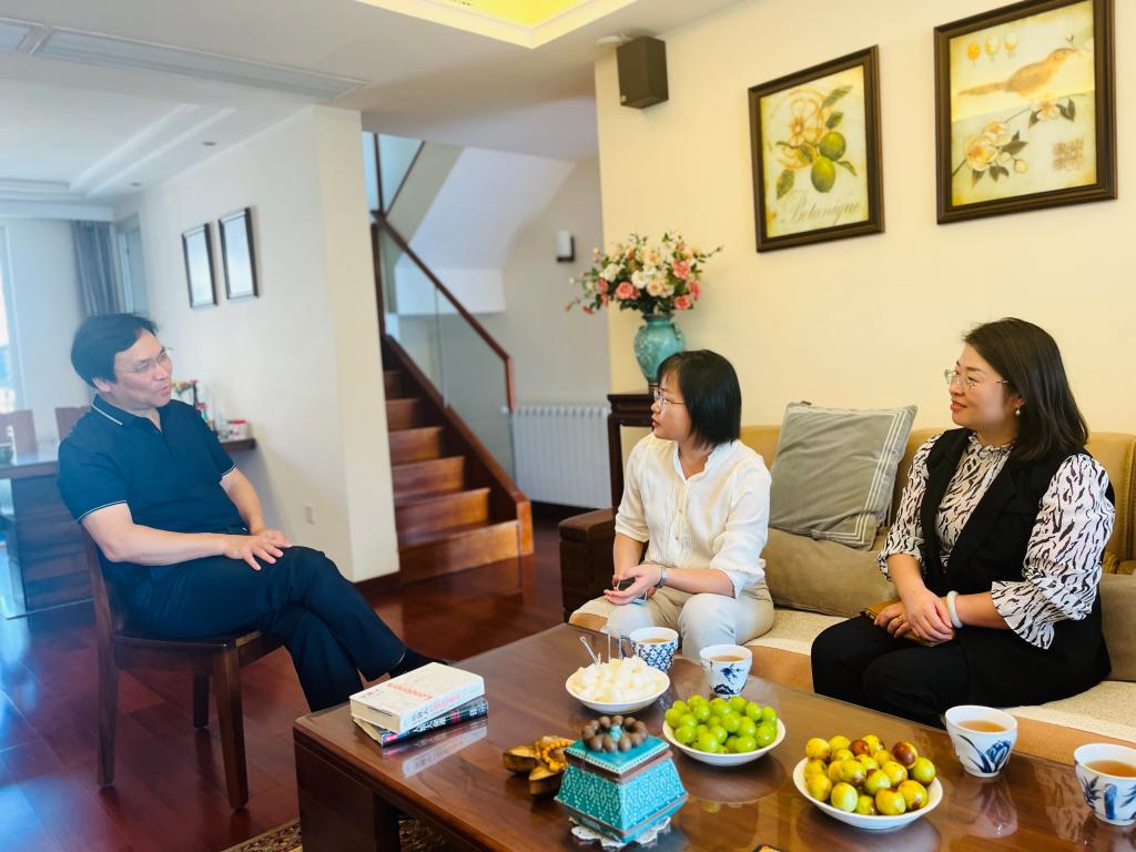 学院领导与老同志交谈