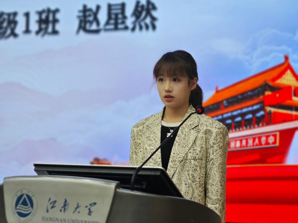 环科2201班赵星然作为积极分子代表进行发言,她表示将以党员标准严格要求自己,在工作和学习中不断向党组织靠拢,认真加强理论学习,提高党性、政治修养,发挥先锋模范作用;积极参加党组织活动,以入党作为人生重要目标,力争突破自己,以实际行动回报社会。