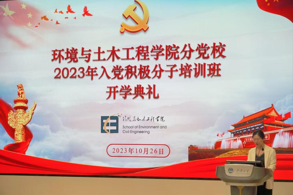 10月26日下午,环境与土木工程学院分党校2023年入党积极分子培训班开班典礼暨开班第一讲在1C109召开。本期培训班由班主任周期老师主持,2023年入党积极分子全体学员参加。