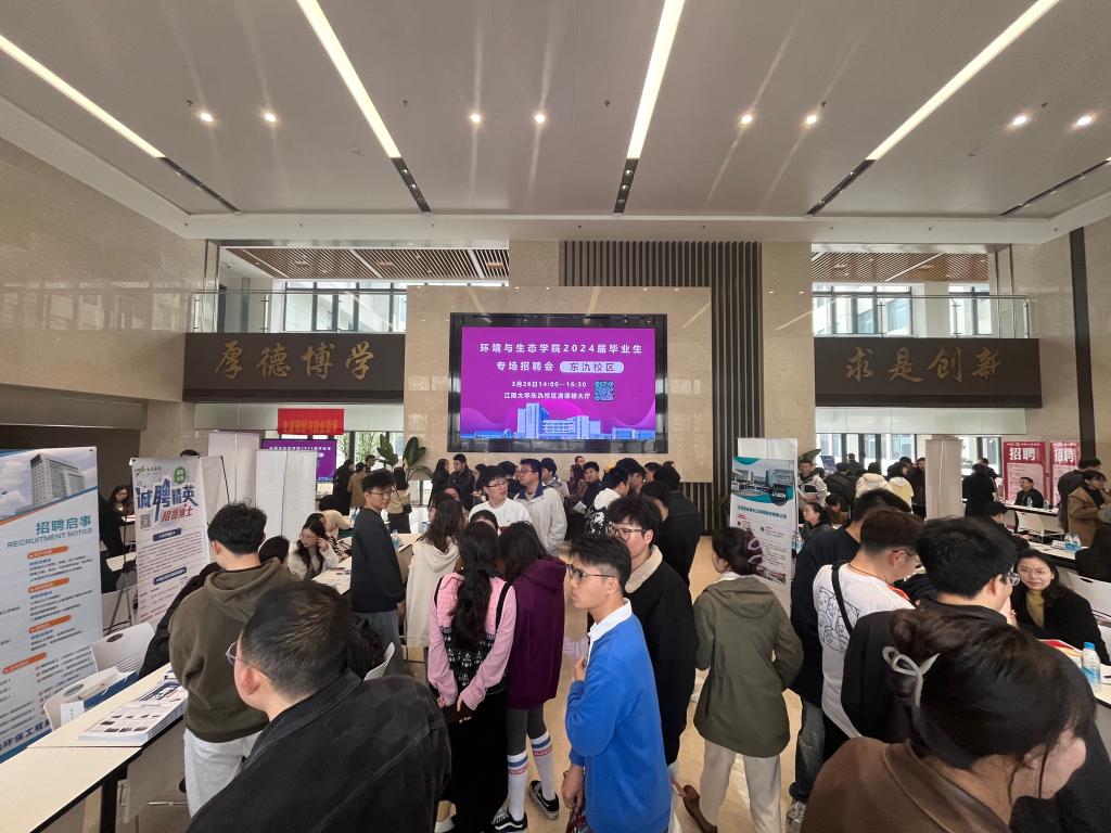 为深入学习贯彻党的二十大精神,落实党中央、国务院“稳就业”“保就业”决策部署,抓住春季招聘关键期,用好校园招聘主渠道,加深校企合作,环境与生态学院于3月26日下午在东氿校区清源楼成功举办了2024届毕业生春季专场招聘会。