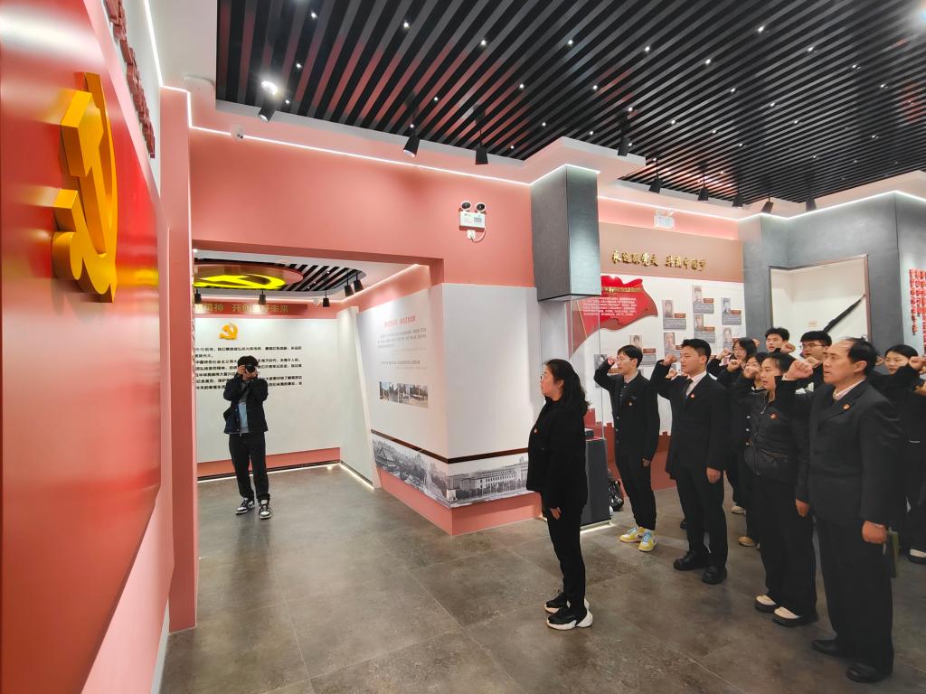 祭扫结束后,师生们依次进入陈列馆,周期结合史实讲述了无锡先烈武装抗日斗争的英雄革命事迹。在馆内,全体党员在胡娟的领读下,重温入党誓词,不忘初心,牢记使命。