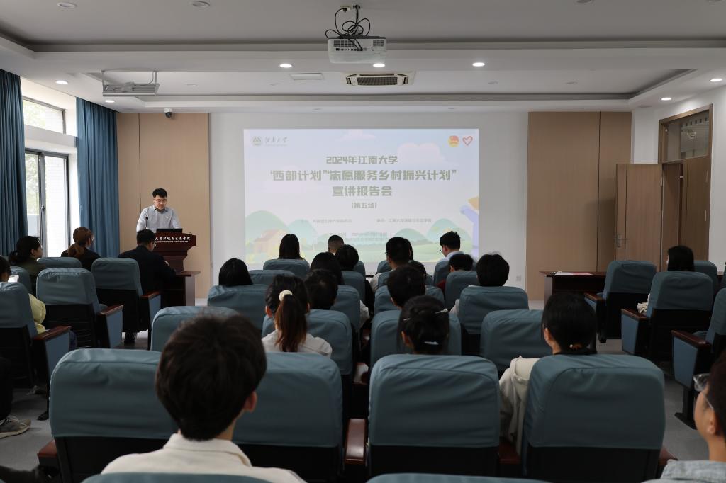 4月25日上午,2024年江南大学“西部计划”“志愿服务乡村振兴计划”(兴化专场)宣讲报告会在环境与生态学院D303报告厅举行。泰州团市委统战部(社联部)副部长谭奇,兴化团市委副书记柯伟、兴化市昭阳街道综办工作人员陈剑韬,江南大学环境与生态学院党委副书记、副院长胡娟,江南大学团委组织部副部长王牧,江南大学青年志愿者协会主席杜添媛出席活动,各学院学生代表参加了活动,宣讲会由环境与生态学院分团委书记薛羚伟主持。