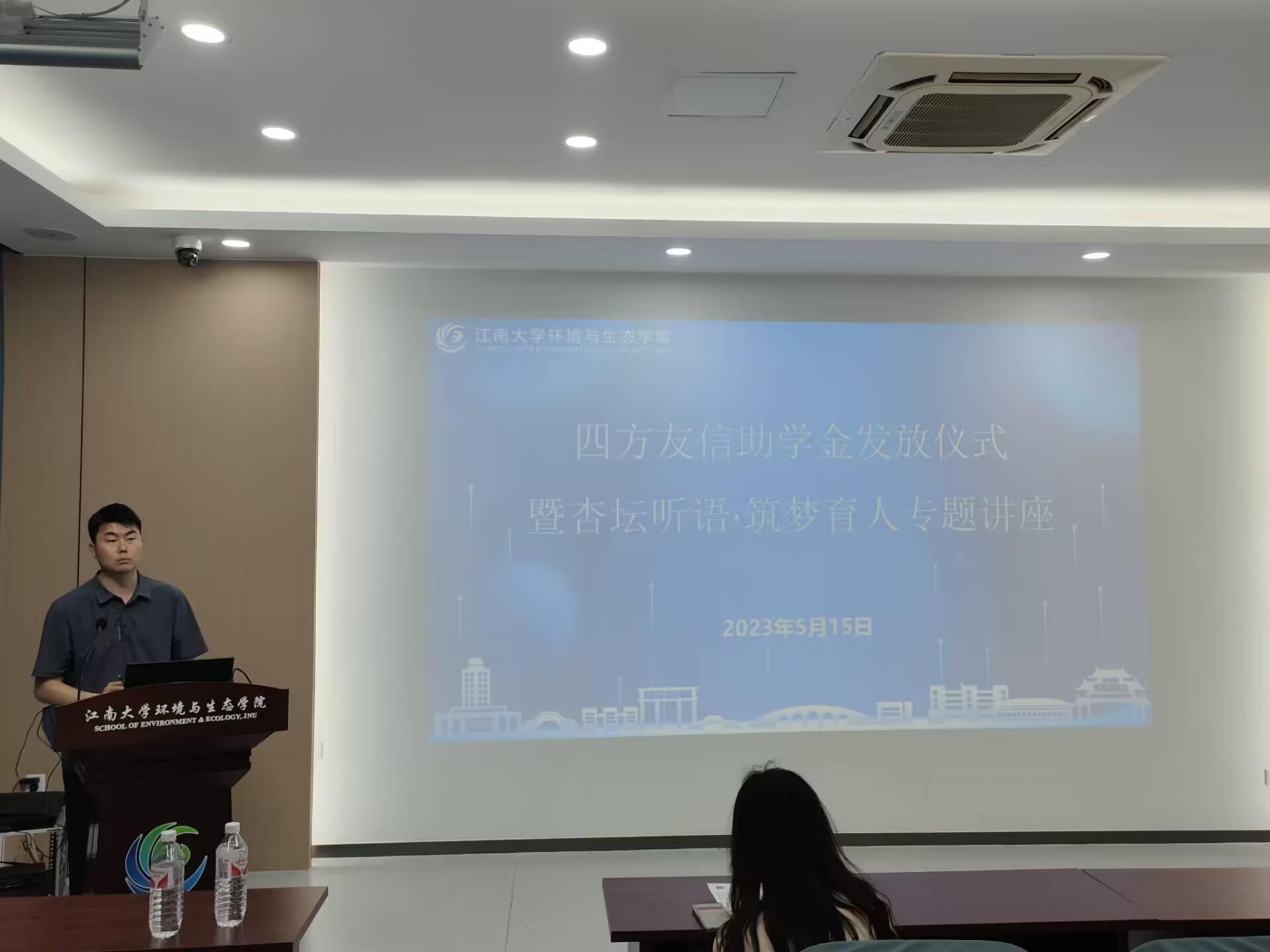 5月15日下午,环境与生态学院在D303举行四方友信助学金发放仪式暨杏坛听雨·筑梦育人专题讲座,会议由辅导员李东辉主持,四方友信助学金受助学生到现场参会。
