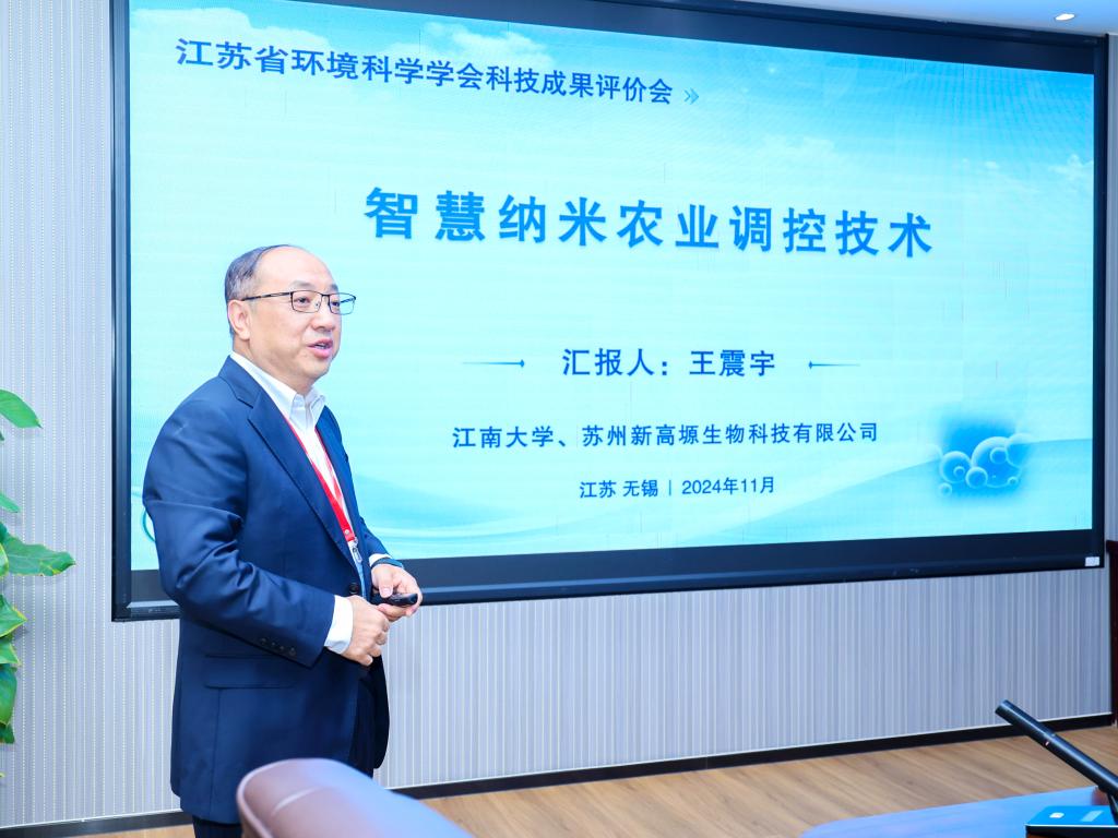 随后,王震宇教授汇报了项目的整体完成情况。经质询与讨论,专家组一致认为,该项目围绕国家“低碳、减污、扩绿、增长”的重大战略,系统探究了纳米材料在作物根际调控、增产提质、增强抗病虫害和节肥减药减排等方面的作用机制,创制了纳米硒锌和纳米碳锌水溶肥等系列产品,形成了整套智慧纳米农业调控技术,并开展了大规模应用示范,经济、环境和社会效益显著,成果达到国际领先水平。