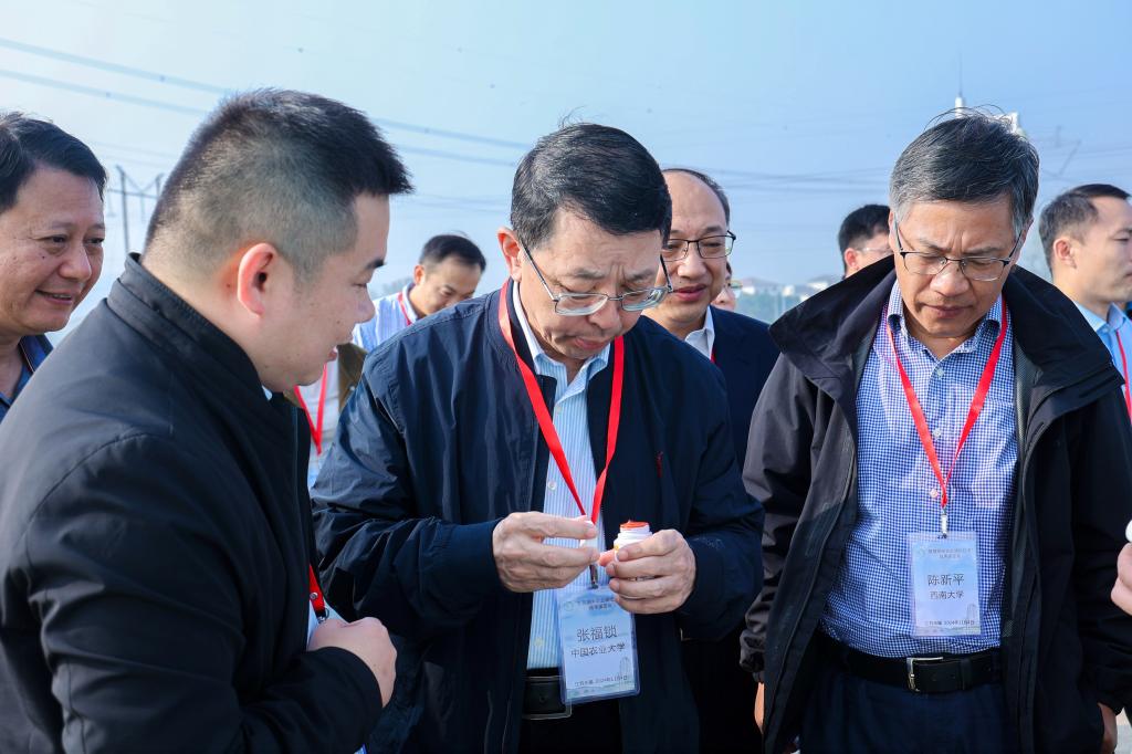 专家组首先考察了项目团队在锡山区太湖水稻园开展的化肥减量稳产纳米硒调控示范,深入了解了研发的纳米产品性能与示范区水稻生长状况,并进行了现场产量实测,充分肯定了构建的纳米硒锌水溶肥减量化肥10%−25%的调控技术。