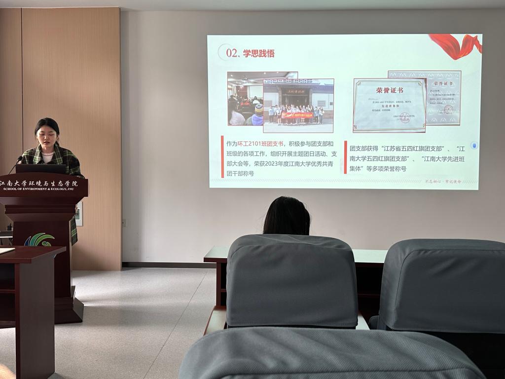 会上,由7名预备党员依次进行答辩汇报。答辩分个人陈述、现场问答、现场评议三个环节。在个人陈述环节,预备党员结合自身实际情况,向党组织汇报自己在预备考察期内理论学习、组织生活参与、专业学习、社会实践等方面的成长以及自身存在的不足之处。最后,周期老师作总结发言。她表示,转正答辩是党员发展程序中必经的一环。在本次答辩中,她看到了大家在预备期一年内能够以党员的标准严格要求自己,不断提高思想水平和理论素养,充分发挥党员的先锋模范作用。