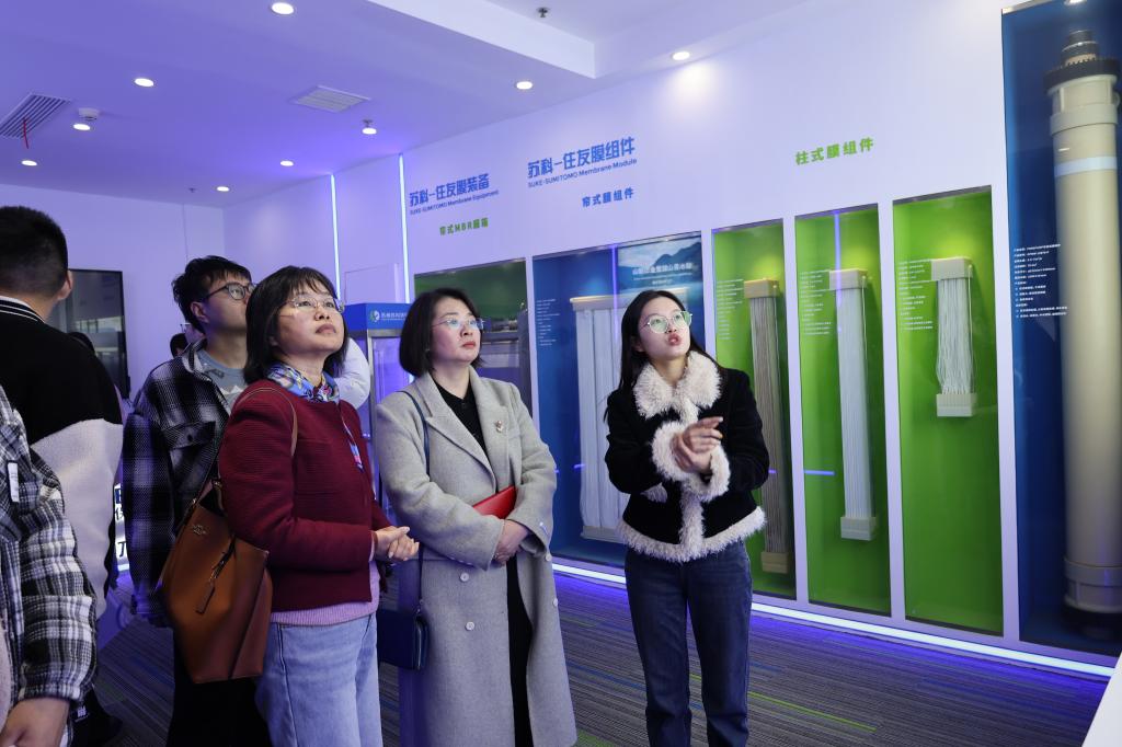 为拓展高校毕业生就业渠道,深化校企协同育人机制,3月12日,江南大学环境与生态学院党委书记李艳、党委副书记兼副院长胡娟、青年教师陈思思、研究生辅导员周期以及2025届毕业生代表一行,前往苏州苏科环保科技有限公司开展访企拓岗交流活动。苏科环保人事总务负责人赵艳、研发中心总监赵龙等企业代表热情接待并陪同参观了企业创新成果展厅,随后双方于会议室展开座谈交流。