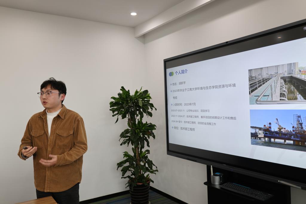 座谈会上,赵艳详细介绍了企业的发展历程、核心业务以及未来规划,并系统阐述了苏科关于“未来菁英计划”人才培养体系,强调企业构建的“技术研发+项目管理”双通道职业发展模式。赵龙博士向在场师生深度解析了“威乐普”膜技术的迭代研发历程与市场应用前景。2023届校友韩嘉豪、胡新宇以技术工程师身份分享了他们从校园到职场的转变过程中,凭借扎实的专业知识和不懈的努力,迅速在技术领域崭露头角。他们的故事不仅激励了在场的学弟学妹们,也为即将步入职场的同学们提供了宝贵的经验和建议。