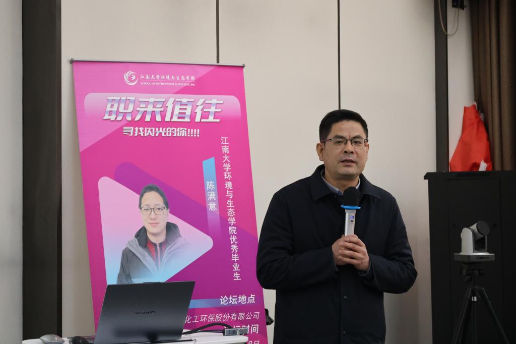 董事长蒋伟群在致辞中强调,环保行业需要既懂技术又懂市场的复合型人才。他结合行业趋势,鼓励学生择一业,事终身,既然选定环境专业,就坚定不移的走下去,保持自主学习、终身学习的好习惯,将专业知识与市场需求结合。所长邵汝英分享了蓝必盛在重金属污染防治、碳中和实践中的经验,她通过具体案例,解析了环保技术研发如何帮助企业实现经济效益与环境效益双赢,引发师生热烈讨论。