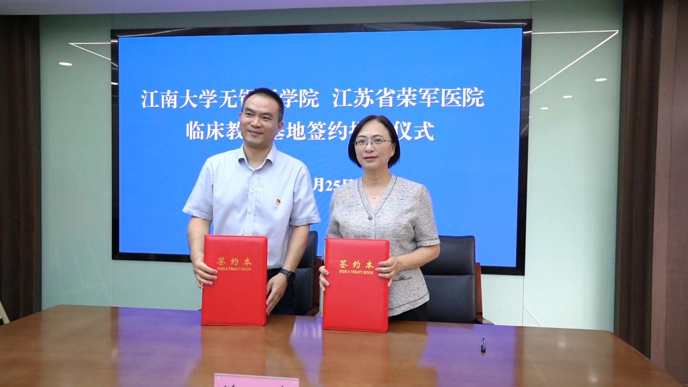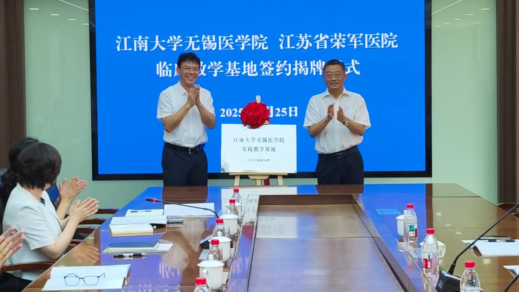 签约仪式上,陈卫与刘军共同为“江南大学无锡医学院实践教学基地”揭牌,向琪与李佟共同签署《临床教学基地合作协议书》。签约前,李佟简要汇报了医院发展历程、临床专科建设、临床科研教学条件以及未来发展规划等相关情况。