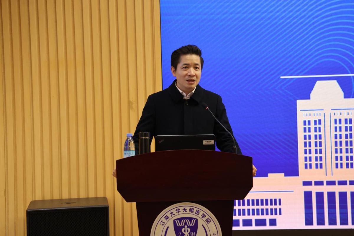 1月15日,山东第一医科大学陆林院士受邀来校考察并开展院士讲坛,以“我们为什么需要医学科学家”为主题,在医学院C101报告厅为师生们带来了一场精彩的讲座。山东第一医科大学党委办公室副主任荣兵,脑科学与类脑研究院副院长于广福、教授靳梦,江南大学党委常委、副校长、无锡医学院院长马鑫,校长助理马鲁豫,党政办公室副主任陈艳君,无锡医学院执行院长孙宁、行政副院长代卉、副院长刘贇、副院长柴高尚等出席了讲坛。讲坛由马鑫主持。