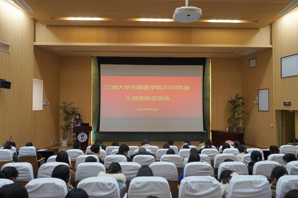 2019年3月1日,江南大学无锡医学院学生入党答辩会在医学院C101报告厅举行。医学院党委副书记副院长奚晓岚、各班班主任、辅导员、全体学生党员、各团支部群众代表均出席了本次会议并担当评委。