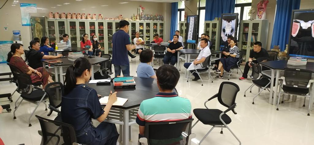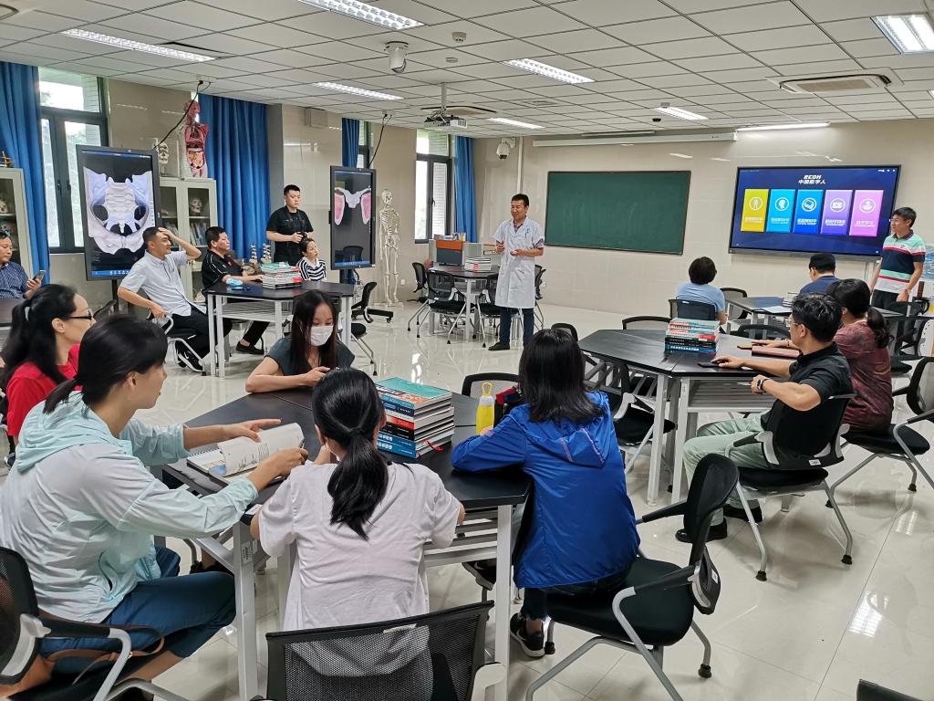 参观江南大学人体科学馆后,大家在医学院D栋大楼人体解剖学实验室开展了热烈讨论:首先每位老师结合各自的专业特长进行自我介绍。然后就《体育健康学》《运动解剖学》等学科交叉课程的教学内容设计、教学方法、教学特色进行了广泛讨论,为课程教学大纲的制订和课程建设提供了框架方案。