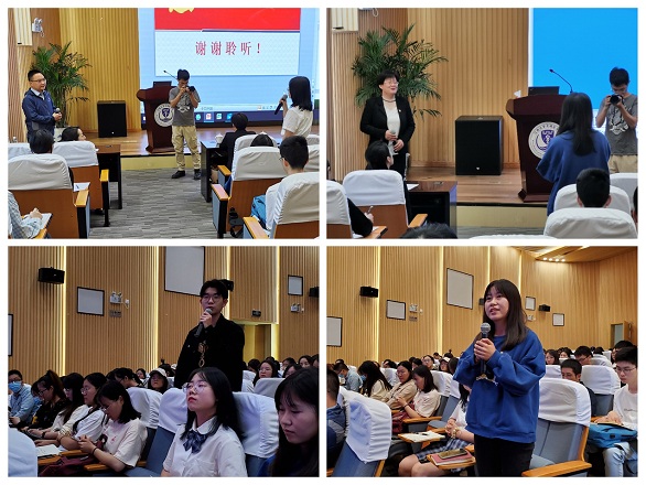 两位教授尚未开讲就赢得在场同学们的阵阵掌声。董文霞教授首先和同学们分享了自己的抗疫经历与感受,他表示自己就是在国家和人民需要的时候做了一名党员应该做的事情,“我是一名党员,疫情就是命令,防控就是责任,我不上谁上。”从主动请缨到第一个危重病人的主动守夜,从坚守医疗队队长职责到做好抗疫一线临时党支部委员工作,是中国共产党党员的身份和临时党支部的那面党旗每天激励着他勇担风险、抗住压力、不断前行。他鼓励同学们,要积极向党组织靠拢,始终要以党员的标准要求自己,努力做能做、该做的事情,并且一定要做好。董教授的抗疫经历和作为一名共产党员矢志不渝的追求,深深震撼着现场每一位同学!