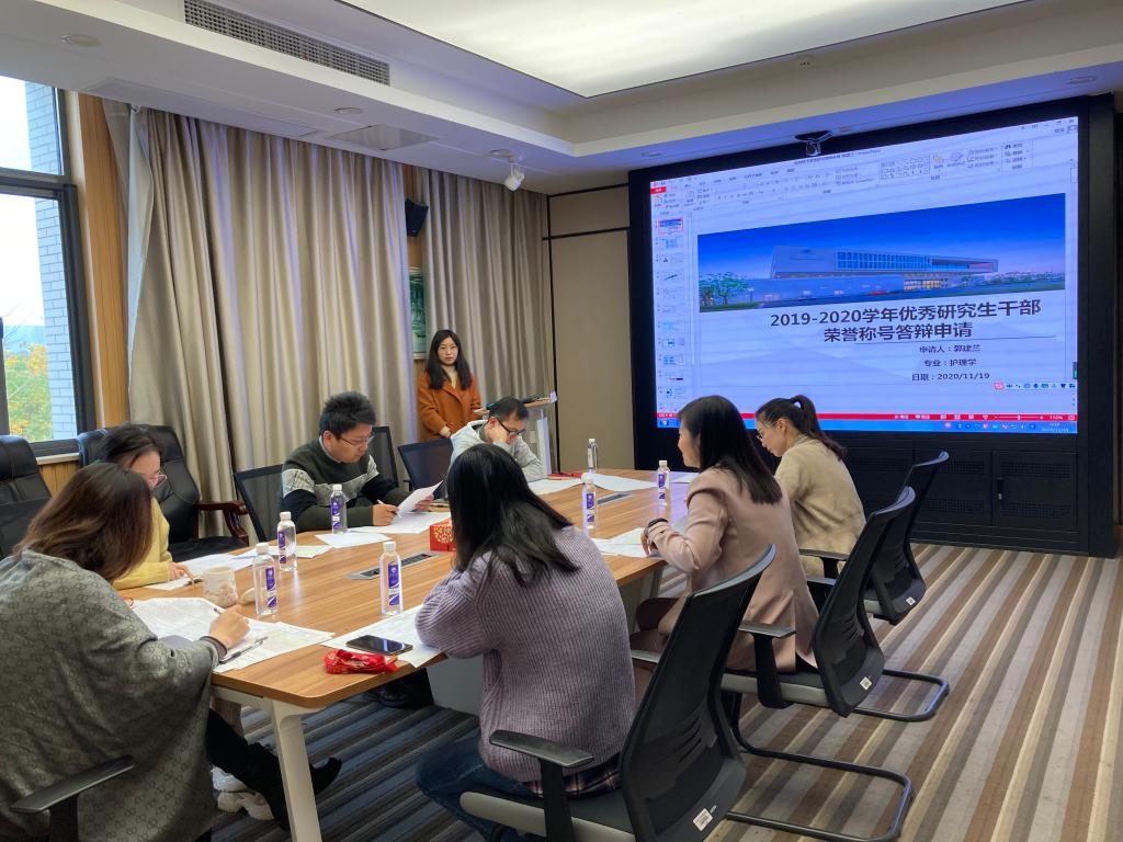 在本年度评奖评优工作启动前,院学工组召开专门会议,强调了要严格遵循文件规定操作评审工作,并针对近阶段的评审会议进行有序部署安排。自9月起,医学院陆续组织开展了2019-2020年度研究生学业奖学金评审会;研究生国家奖学金评审答辩会;本科生校级三好学生、三好学生标兵、优秀学生干部、先进班集体、国家奖学金等各类答辩会;研究生荣誉称号答辩会等,邀请院领导代表、系部主任、教授代表、班主任代表、教学条线秘书、辅导员及学生代表参与评审。评审过程含个人申请、资格审查、个人陈述、汇报答辩等环节,秉持“公平、公正、公开”的原则,保障评审过程公开透明,评审结果公示均无异议。