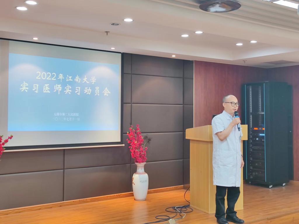 无锡市第二人民医院进点实习培训会在二院北院区举行,二院科教处处长赵霞主持会议。首先,夏加增致欢迎辞,介绍了二院百年历史,期待同学们在二院获得丰富的医学知识和难忘的人生经历。而后,实习带教教师代表分享实习经验,提出实习是对所有科室基本知识基本技能全面了解的阶段,同学们应该保持热情保持好奇,积极练习各项临床基本操作,注重临床实践。接着院领导为实习生颁发实习用品和医院纪念品,而后实习生代表上台发言,承诺将抓住每一个学习和锻炼的机会,用实际行动践行“健康所系,性命相托”的誓言。最后,赵鹏再一次详细解读2022年临床实习轮转计划。