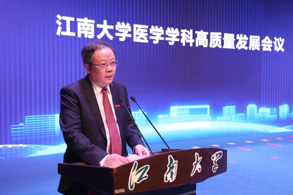 2月24日下午,江南大学医学学科高质量发展会议在文浩馆一楼观众厅隆重举行,会议特别邀请中国科学院院士、上海交通大学教授陈国强作大会报告。全体校领导、党委常委、校长助理及党委办公室、校长办公室、市校共建合作办公室、研究生院、无锡医学院以及六家附属医院相关负责人出席会议。会议由校党委常委、副校长吴正国、马鑫先后主持。