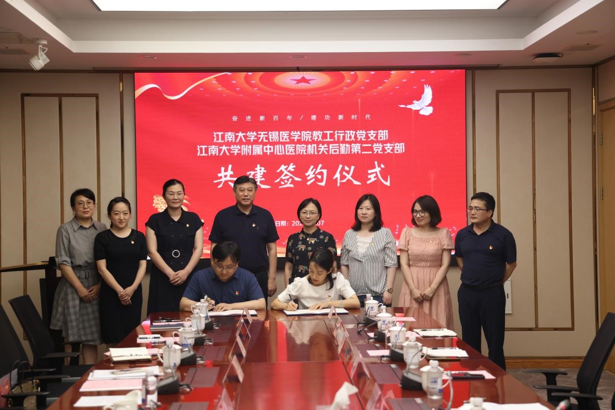 为深入贯彻学习习近平新时代中国特色社会主义思想,全面加强党组织建设,充分发挥党组织的政治功能,进一步提升党建工作水平,2023年7月7日,江南大学无锡医学院教工行政党支部与江南大学附属中心医院机关后勤第二党支部共建签约仪式在医学院C106举行。医学院党委书记向琪,江南大学附属中心医院党委书记鲁晓杰,江南大学附属中心医院党办主任万付梅,医学院副院长陈雪,机关后勤党总支书记李杨,机关后勤第二党支部书记、教育处处长姜宇,机关后勤第二党支部副书记田媛媛以及双方党支部党员出席签约仪式。活动由医学院党委副书记、副院长、教工行政党支部书记包羽主持。