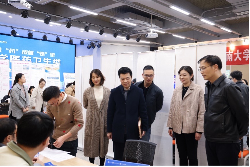 江南大学党委常委、副校长、无锡医学院院长马鑫,党委学生工作部部长周伟涛,无锡医学院党委书记向琪,生命科学与健康工程学院党委书记史志洪,学生工作部副部长、就业指导中心主任单筱婷,党委研究生工作部副部长、研究生院副院长陈周,无锡医学院党委副书记兼副院长包羽,无锡医学院副院长柴高尚,生命科学与健康工程学院党委副书记兼副院长蒋艳等来到各个招聘展位,同用人单位代表和求职学生进行亲切交谈,进一步了解当前用人单位的招聘需求和学生的求职诉求,鼓励学生们多去了解各个岗位的具体信息,结合自身情况投递简历,争取拿到满意offer。