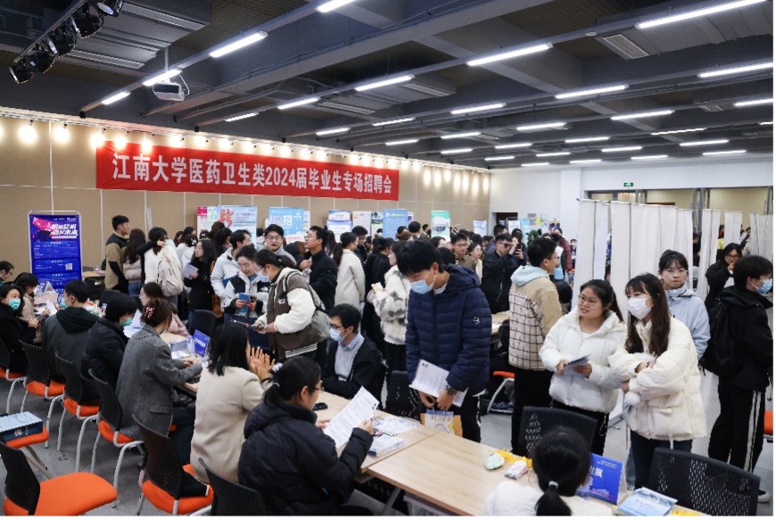 为全面贯彻落实党中央、国务院对高校毕业生就业创业工作的决策部署,充分发挥校园招聘主渠道优势,切实促进2024届毕业生更充分、更高质量就业,11月24日,“医”起荣“药” 成就“锡”望——江南大学医药卫生类首届毕业生专场招聘会在北区大学生活动中心F105招聘大厅成功举办。
