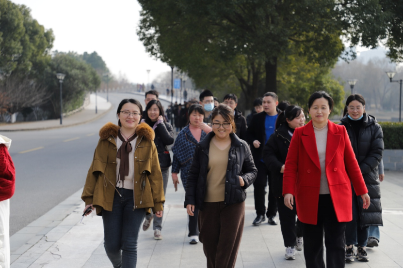 活动伊始,医学院全体老师在医学大楼门口集结队伍、合影留念,在医学院党委书记向琪的带领下,老师们绕着小蠡湖,从医学院到百草园,从图书馆到牡丹园,开展徒步活动,最后到达终点长广溪宾馆。一路上老师们谈笑风生,交流这一年的工作与生活,欣赏江南大学冬日的美景。