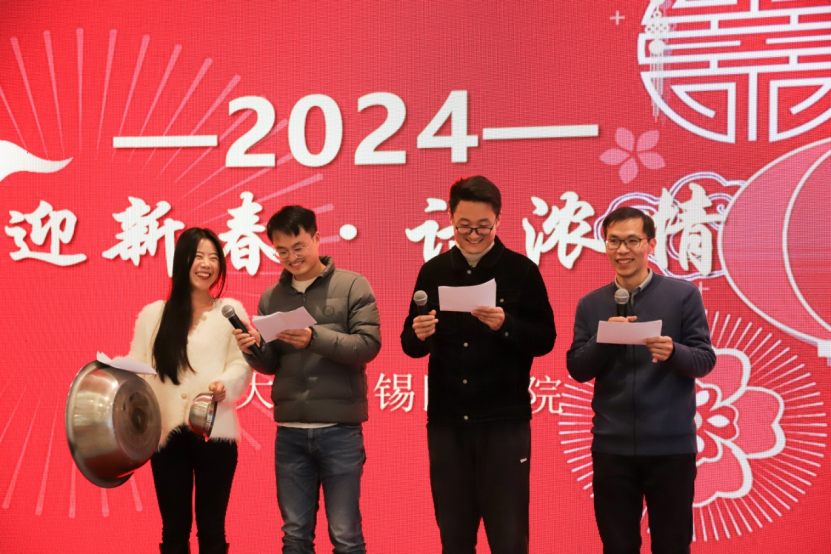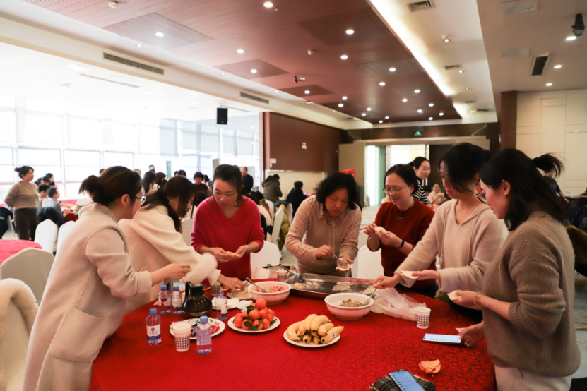 在长广溪宾馆一楼大厅,老师们参与了新春猜谜游戏,进行了包饺子活动,大家默契配合、忙得不亦乐乎,不一会,一个个圆滚滚、白胖胖的饺子整齐地排在餐盘中,现场气氛尤为温馨快乐、一片欢声笑语。在等待饺子下锅蒸煮的同时,医学院“聚力迎新联欢会”开始了,本次联欢会由医学院分工会副主席孙海建和文体委员胡晓丹主持,江南大学党委常委、副校长、医学院院长马鑫和医学院党委书记向琪在活动现场向全体教职工送上了新年祝福,对大家一年的辛勤劳动表达了肯定与感谢,并对新的一年提出了期许。随后各系部表演了精彩的节目,辅导员团队送上了新年祝福和精彩舞蹈、公共卫生系送上了《公卫这一年》三句半、基础医学系新教师们作了自我介绍并送上新年祝福、教辅团队团队用几句诗表达了对医学院未来一年的憧憬、护理系送上了“新年你好、医学院更好”的诗朗诵,老师们纷纷上台一展歌喉,舞姿,最后在品尝热气腾腾美味的饺子中结束了活动。