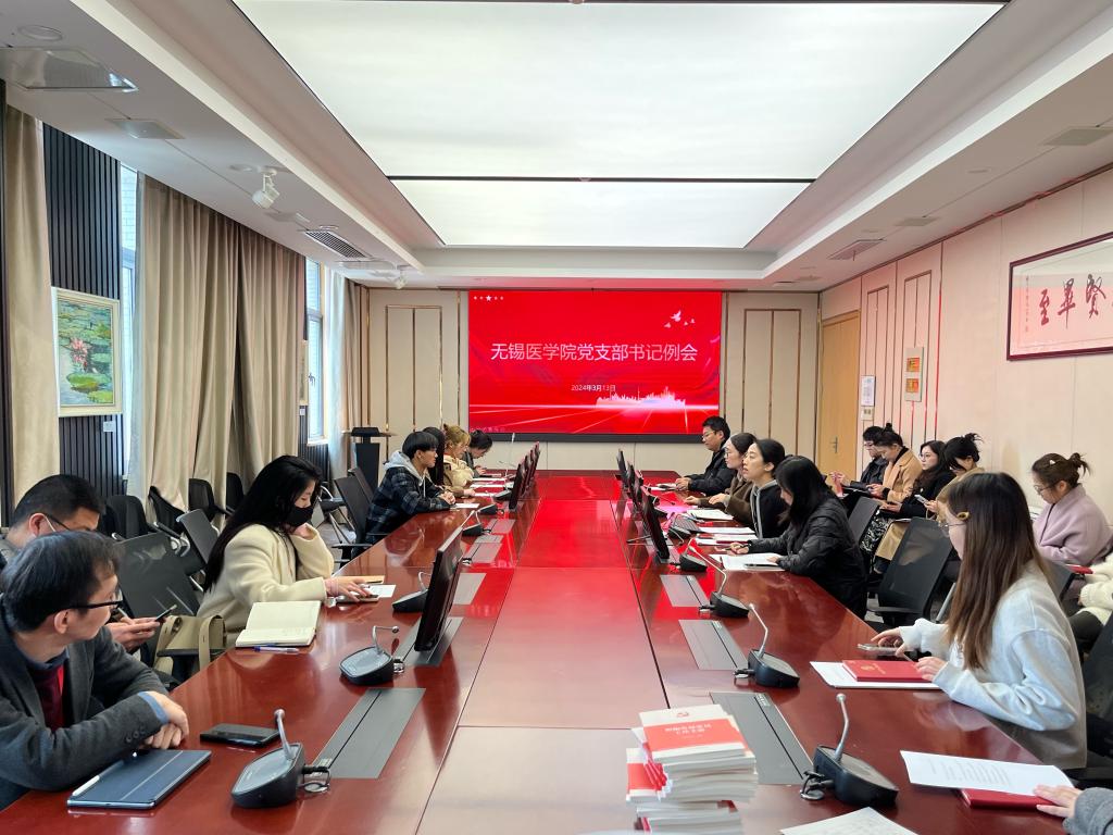 近日,无锡医学院党委在C106会议室召开新学期教工和学生党支部书记会议。学院党委书记向琪,党委副书记、纪委委员包羽,党委专职组织员孙颖,全体师生党支部书记代表参加会议。
