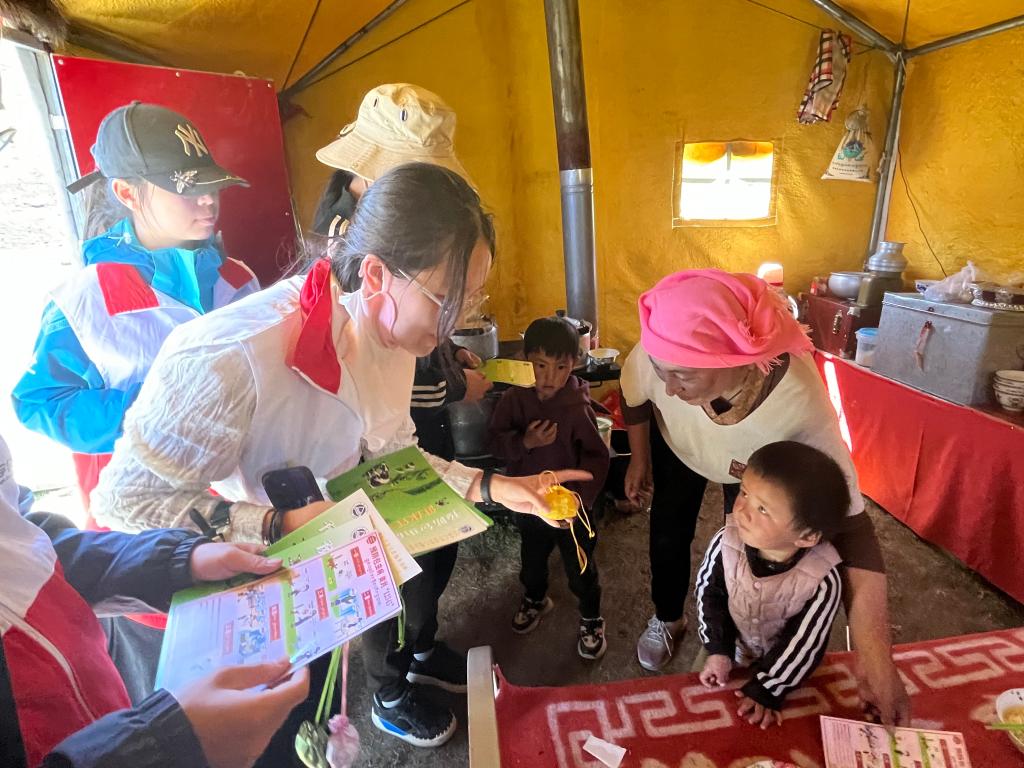 守护牧区,健康先行。为了将健康知识播撒至每一个需要的角落,博爱青春团队深入偏远的牧区,开展了一系列包虫病科普宣传活动。这次活动不仅是一次知识的传播,更是一场关爱健康的旅程。团队成员们自主设计藏语防治手册、制作象征祝福与健康的中药香囊,怀着心系牧民的热情,逐户走访,努力将健康理念传播到每一个角落。