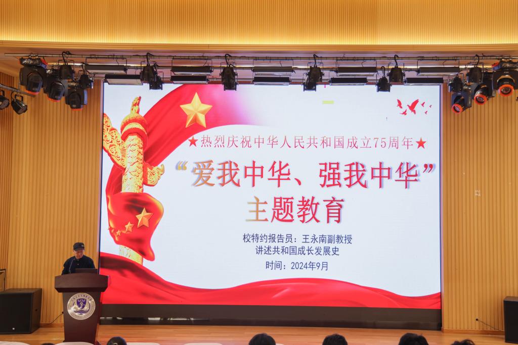为充分展示新中国成立75周年取得的巨大成就,加强爱国主义教育,促使青年学生进一步坚定听党话、跟党走的决心,激发勤奋学习、报效国家的动力,增强民族自信心和自豪感,10月11日上午,医学院邀请学院关工委委员王永南副教授作“爱我中华、强我中华”爱国主义主题教育专题报告,2024级全体新生参与聆听学习。