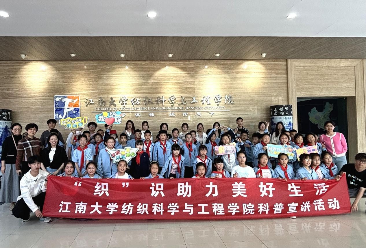 4月8日下午,无锡市尚贤融创小学50余名师生走进江南大学纺织科学与工程学院,开展以“小布料,大梦想”为主题的科普研学活动。活动通过纺织知识讲座、手工实践与传习馆参观等多元形式,深度挖掘纺织科学与日常生活的关联,激发青少年探索未知的热情与创新思维。